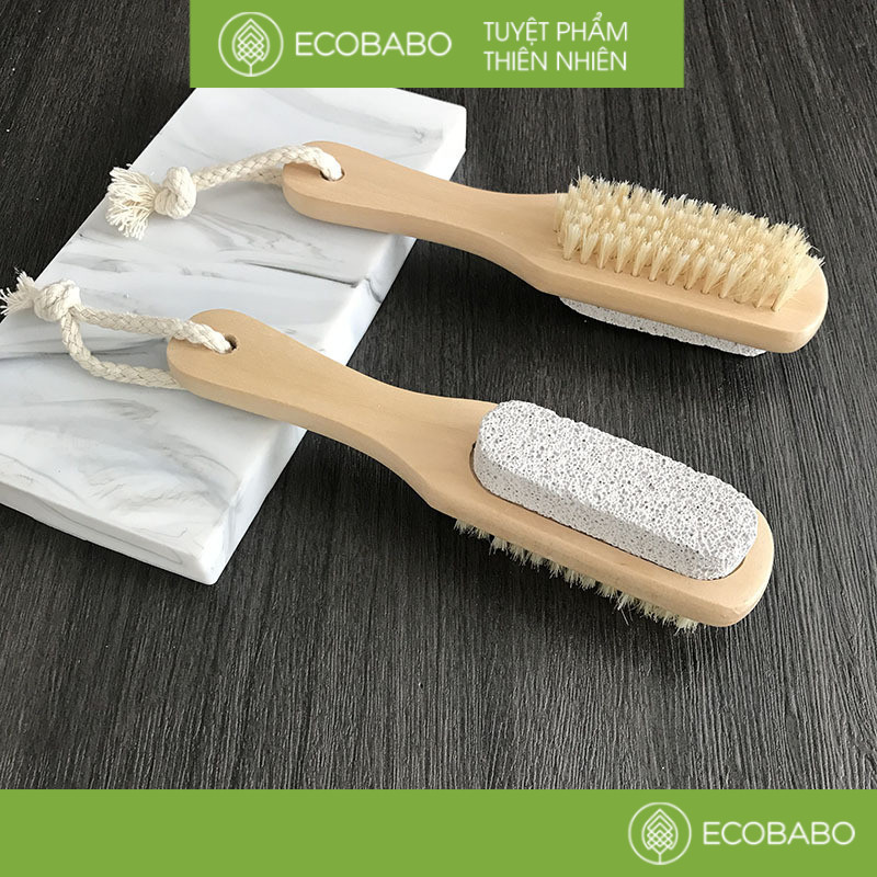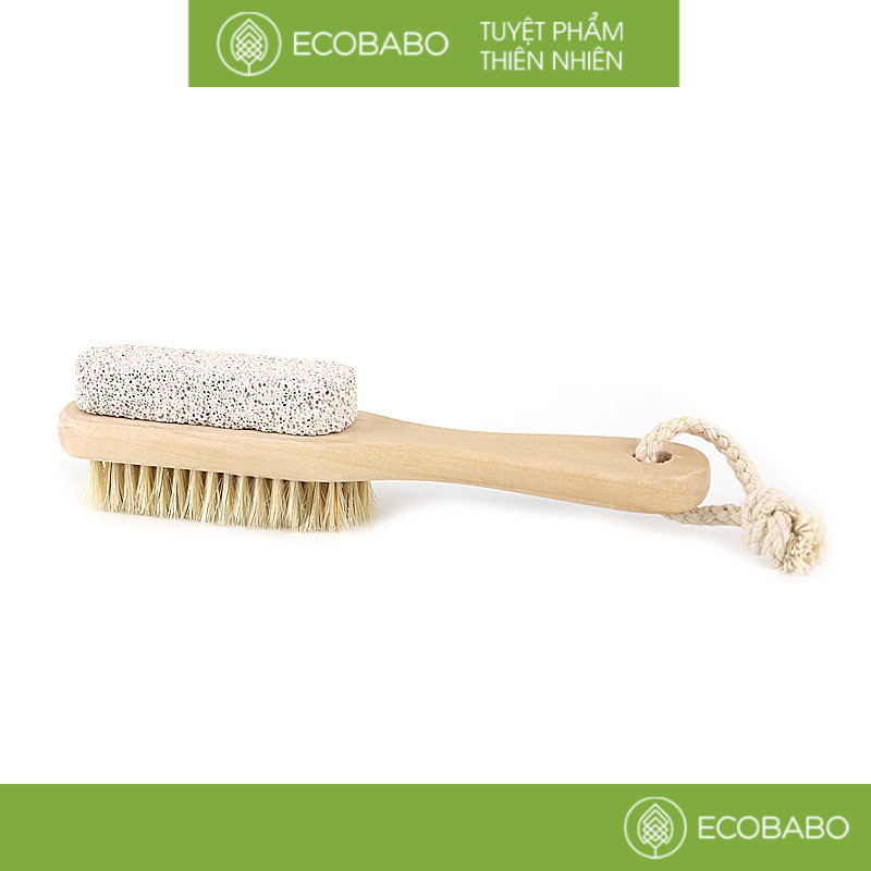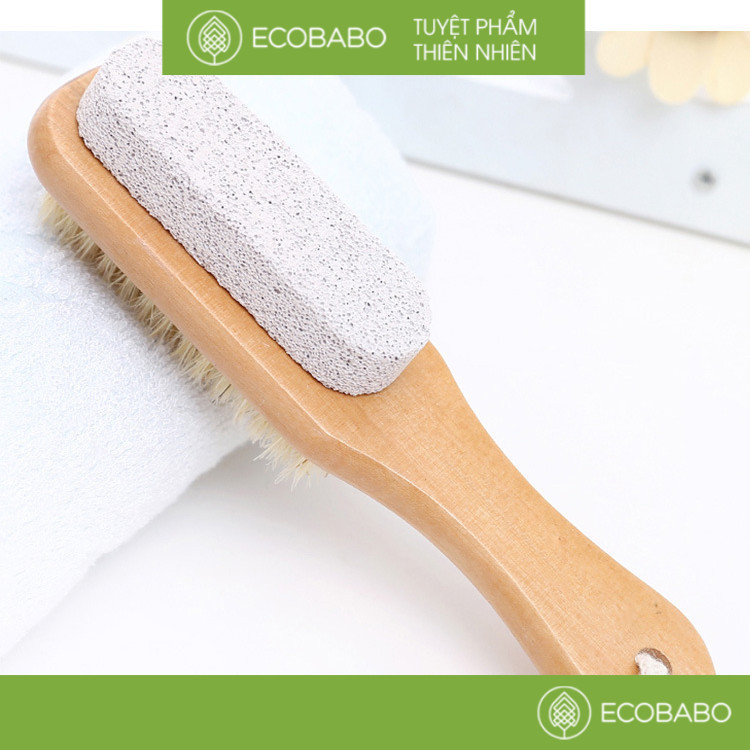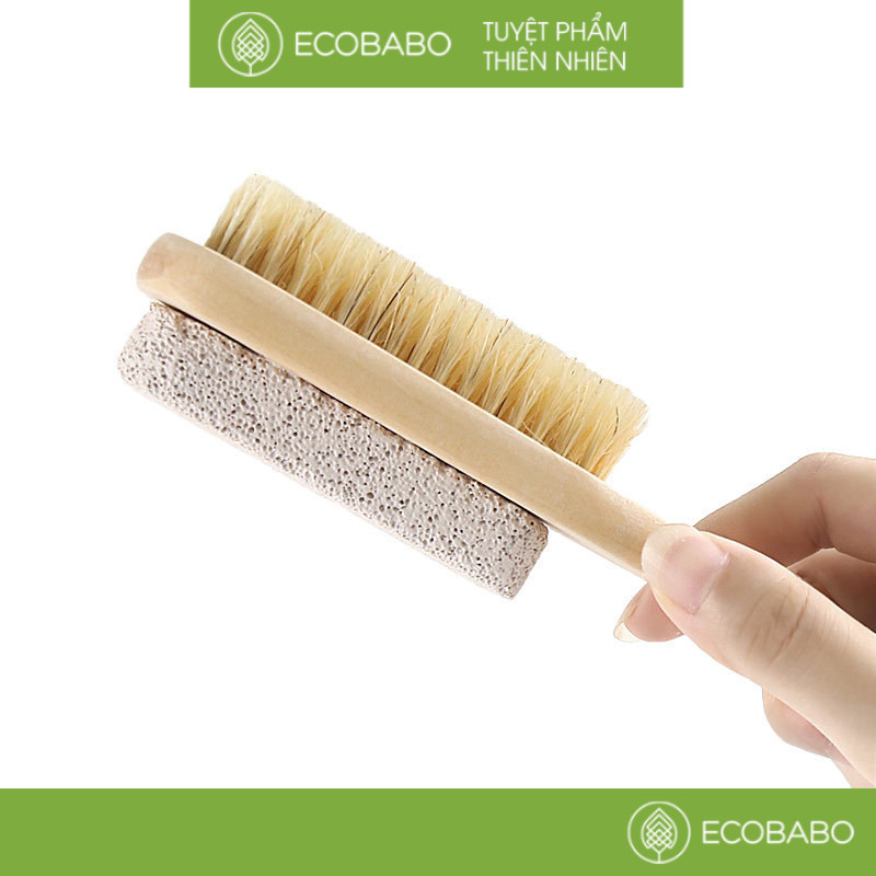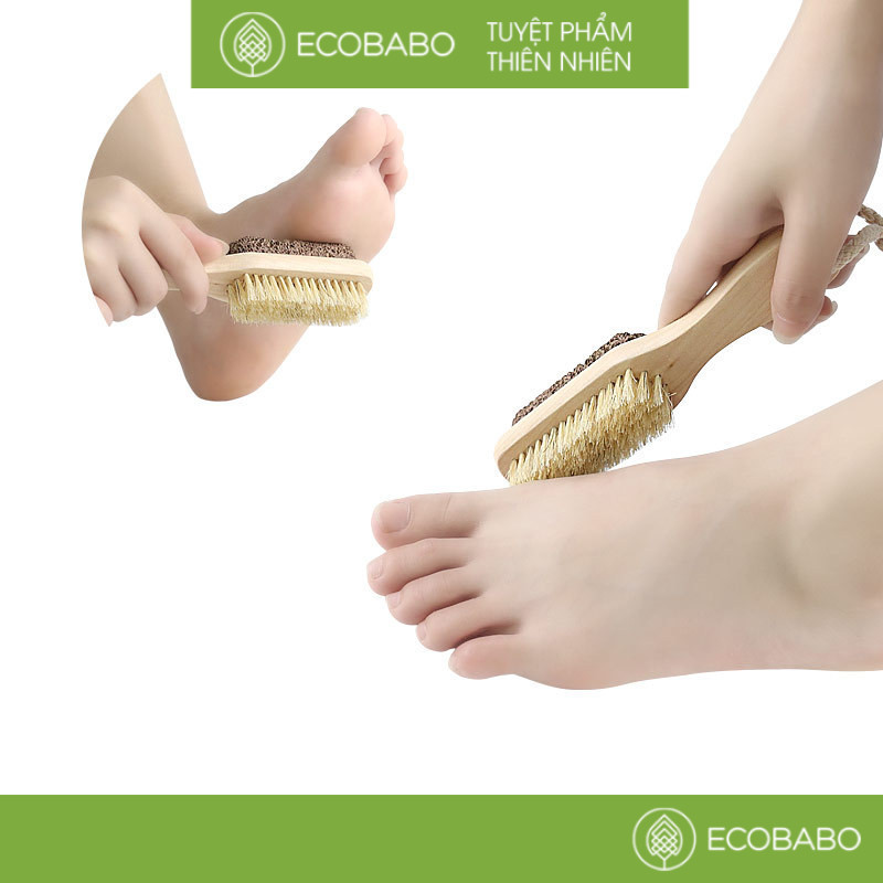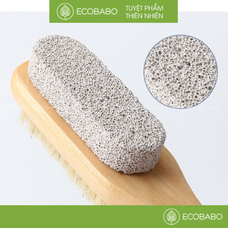 Bàn chải massage chân 2 chức năng với thiết kế 2 mặt – đá bọt tổng hợp và lông tự nhiên giúp bạn dễ dàng tẩy sạch các lớp bụi bẩn, tế bào chết vùng da quanh bàn chân mà không gây kích ứng.