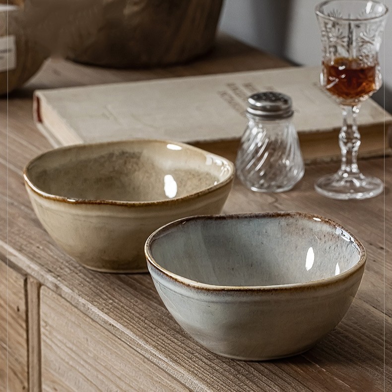 Bát lớn gốm sứ tô tráng mem phong cách cổ điển Nhật Bản kiểu dáng đặc biệt hoài cổ bộ đồ ăn gia đình bát cơm bát cháo
