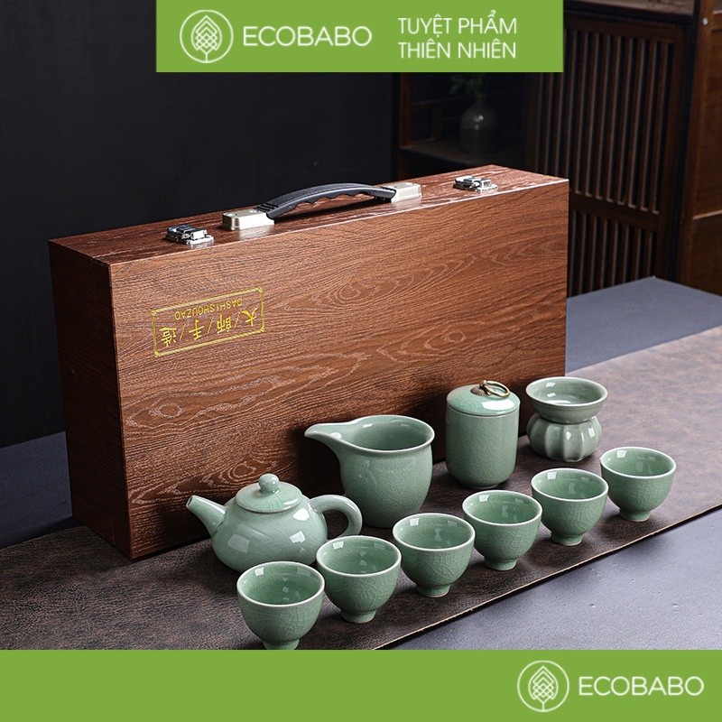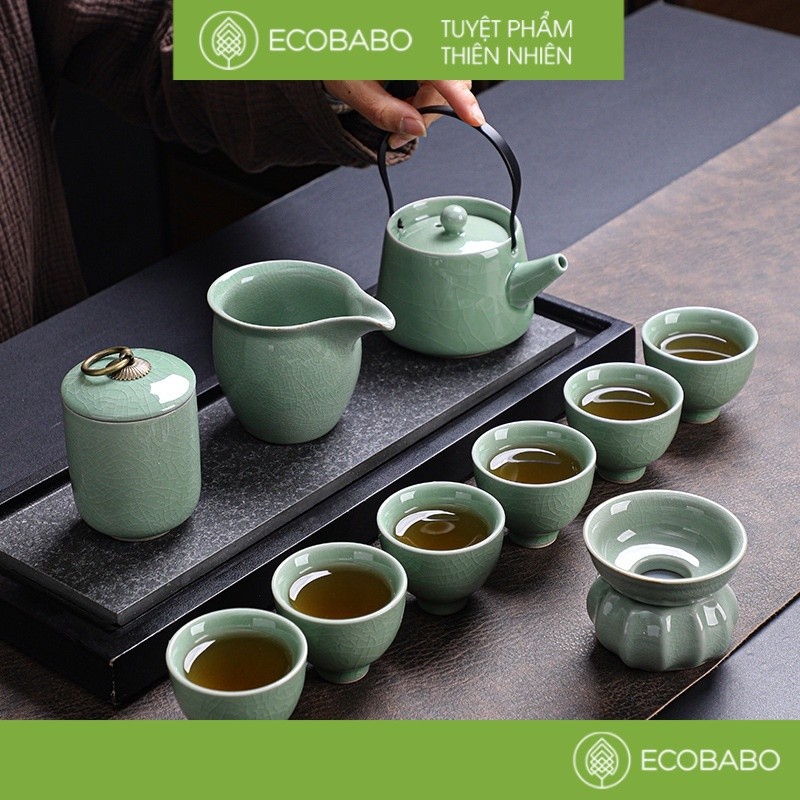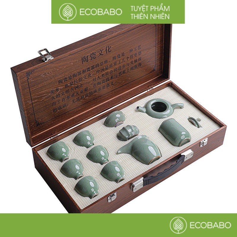 Hãy là người đầu tiên nhận xét “Bộ ấm chén trà men gốm kiến trản thiên mục hoả biến quà tặng cao cấp”