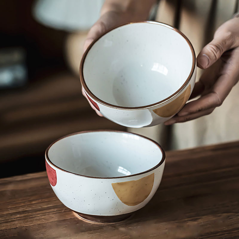 Bộ bát gốm nhật hoạ tiết đơn giản cao cấp trang men bóng decor bàn ăn