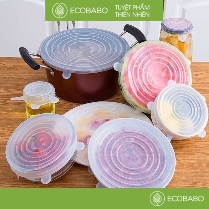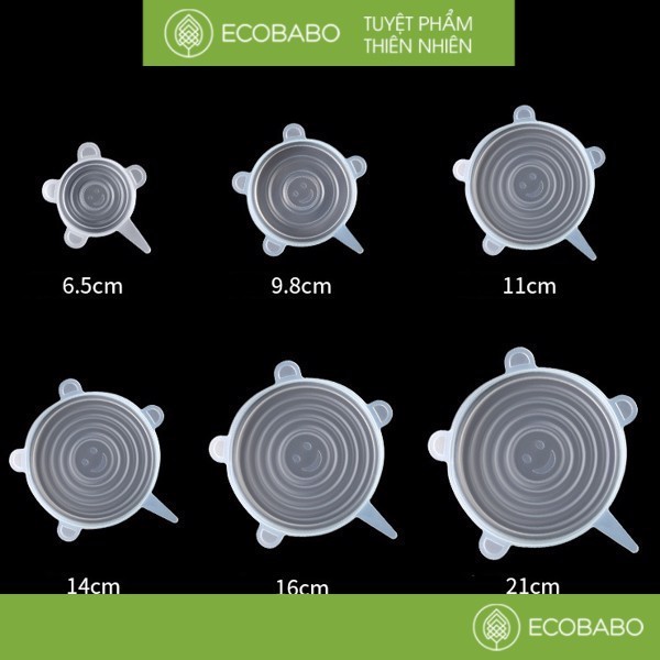 Set 6 nắp với 6 kích thước từ nhỏ đến lớn cùng khả năng co giãn hoàn hảo. Kích thước thông thường giúp bọc kín rất nhiều các loại hình dạng và kích thước hộp, bát. Khả năng chịu nhiệt cao từ -50 độ C đến 250 độ C có thể được sử dụng trong tủ lạnh, lò vi sóng, tủ đông.Có thể nói đây là bộ nắp bảo quản thực phẩm ưu việt nhất hiện nay. Một giải pháp tuyệt vời nhằm thay thế hoàn toàn túi ni lông và màng bọc thực phẩm.