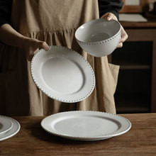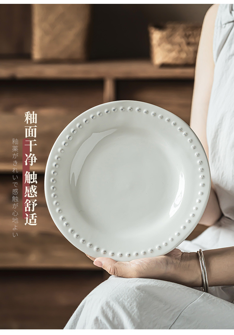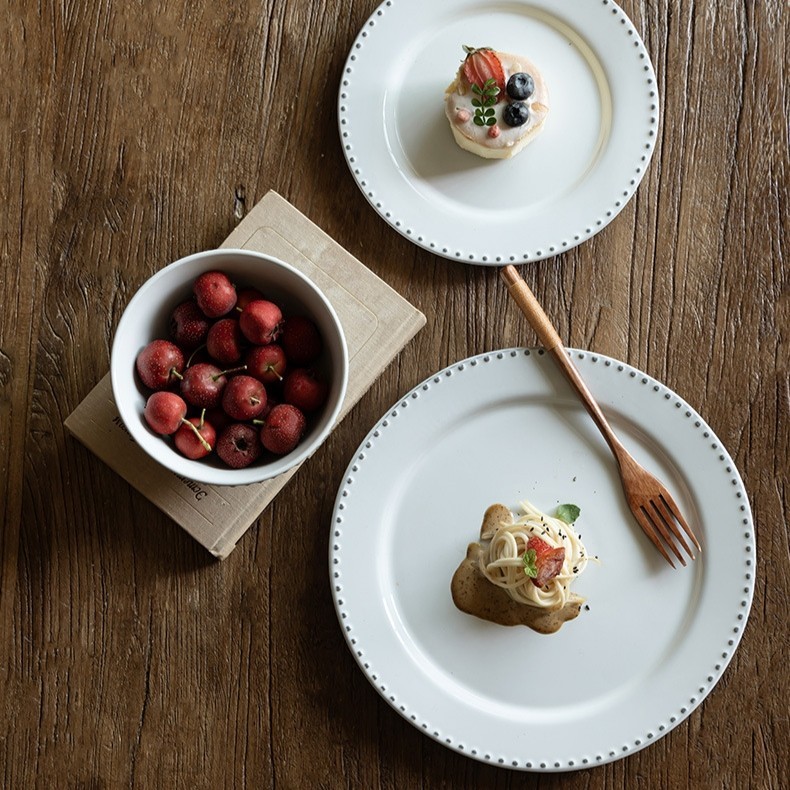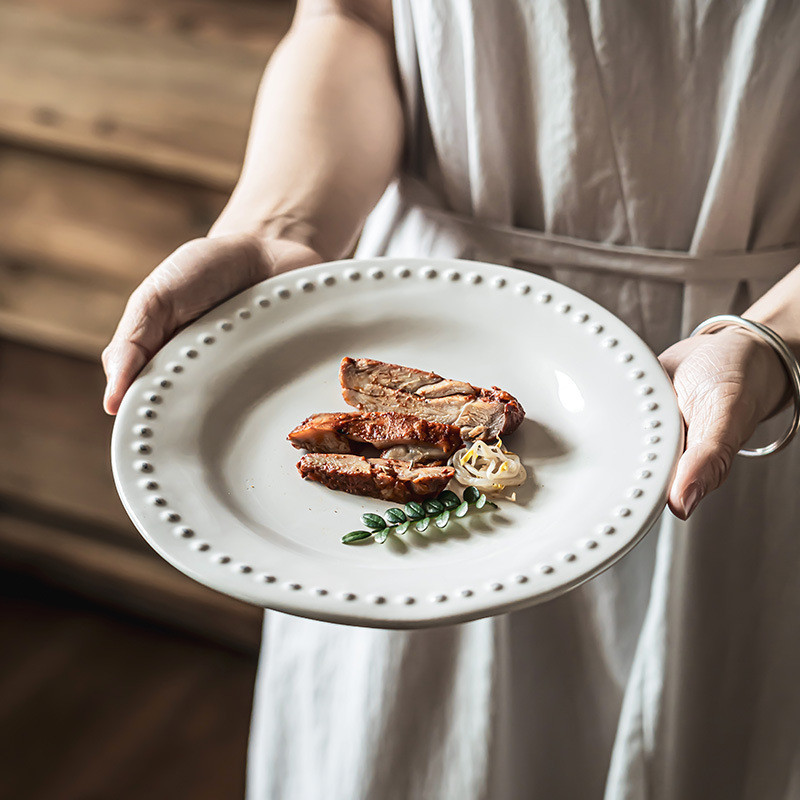 Đĩa gốm cao cấp Châu Âu đính hạt bằng gốm nổi – Chuyên dụng nhà sang trọng Âu dùng ăn sáng rau củ quả tráng miệng