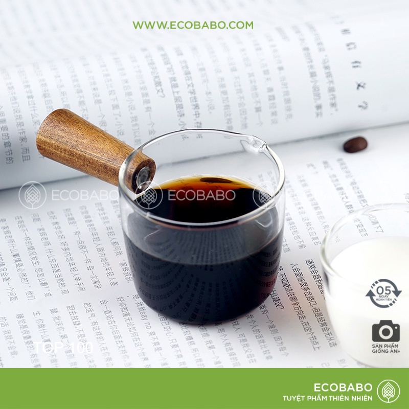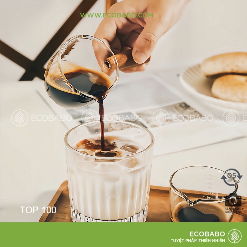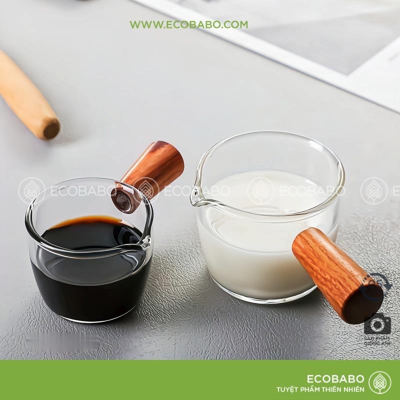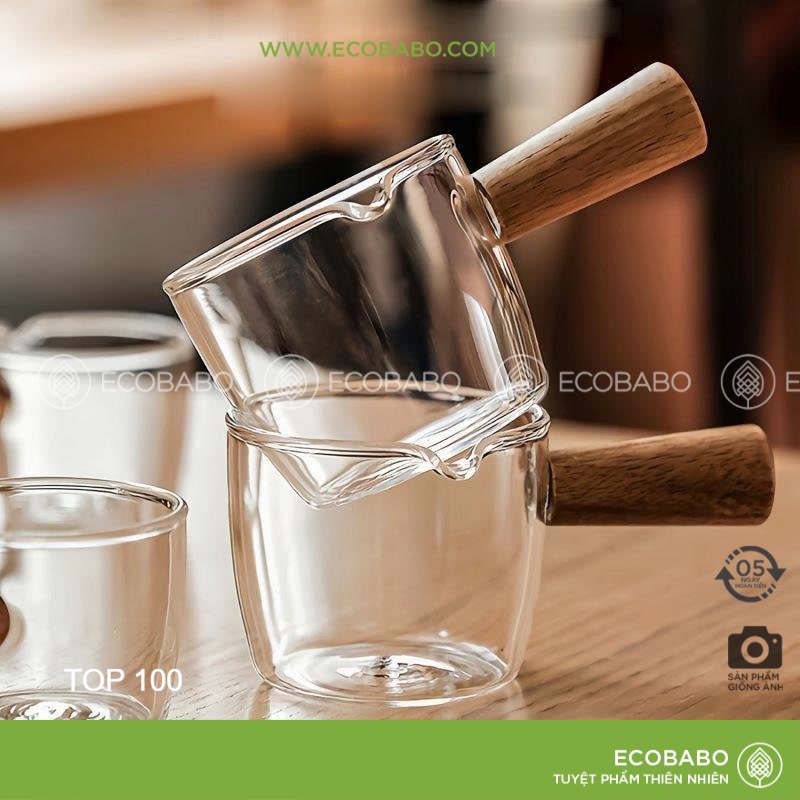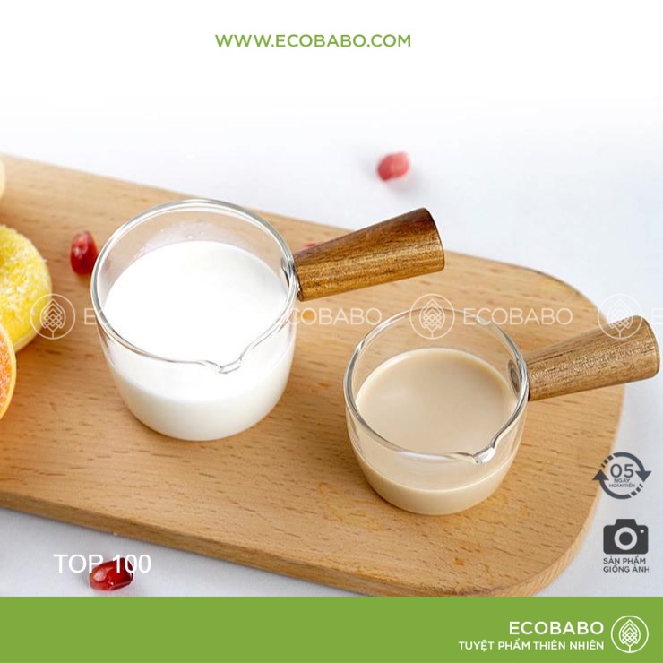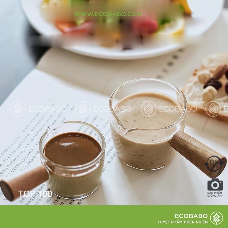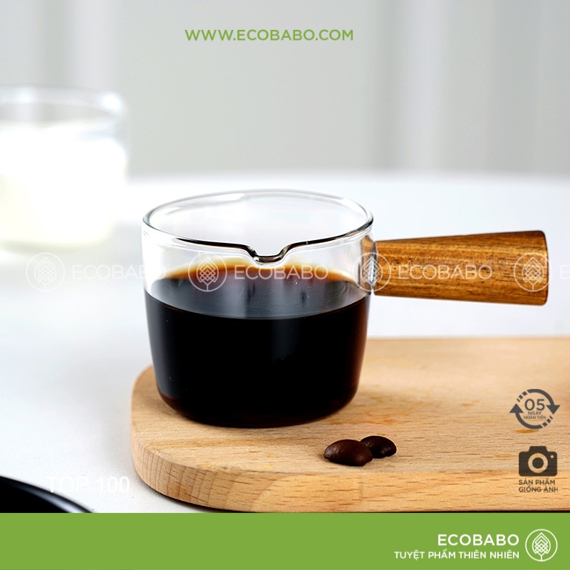 Ca rót thủy tinh tay gỗ – 100ml sở hữu chất liệu thủy tinh trong suốt và đẹp mắt.