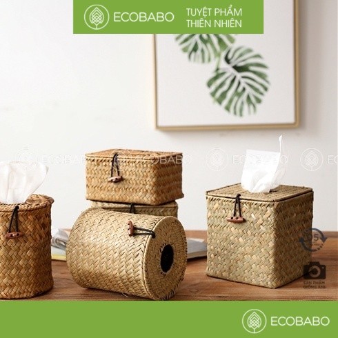 Hộp giấy ăn cỏ bàng thủ công trang trí bàn ăn thân thiện môi trường Ecobabo