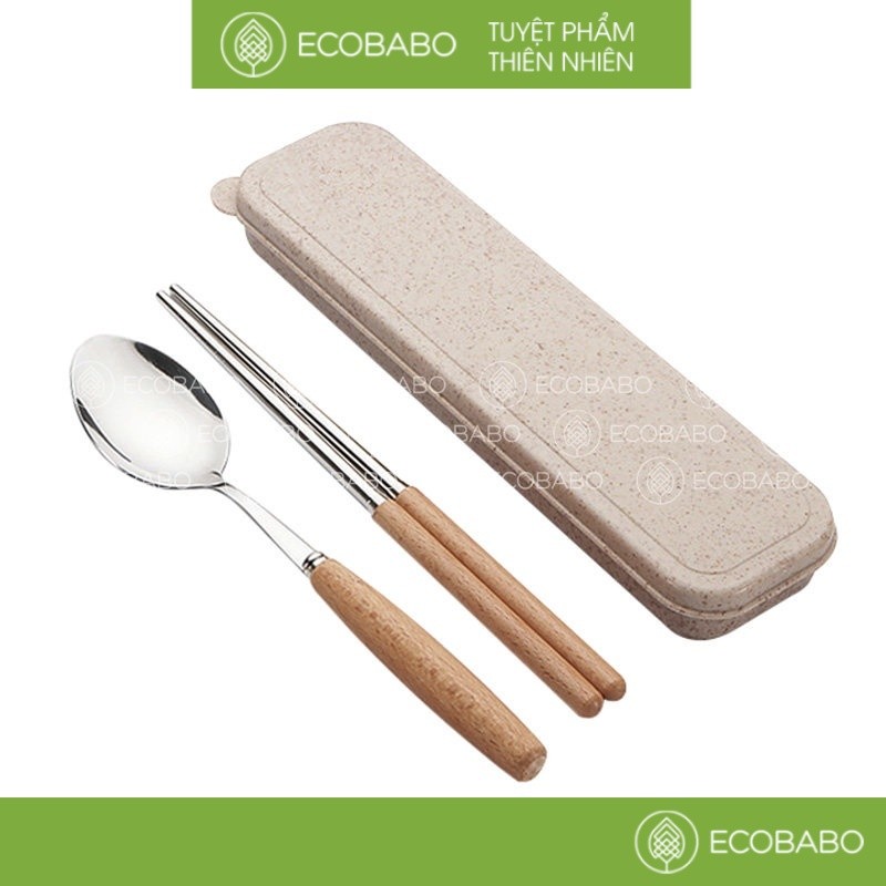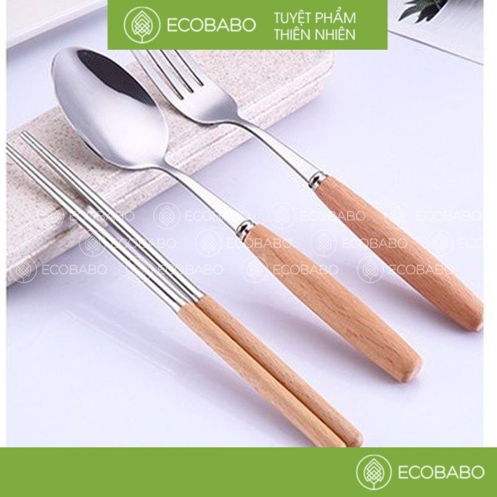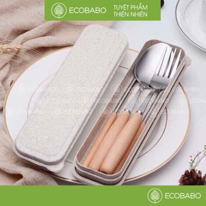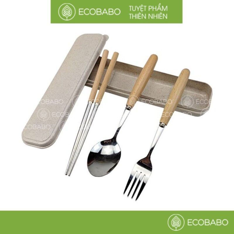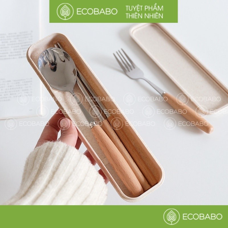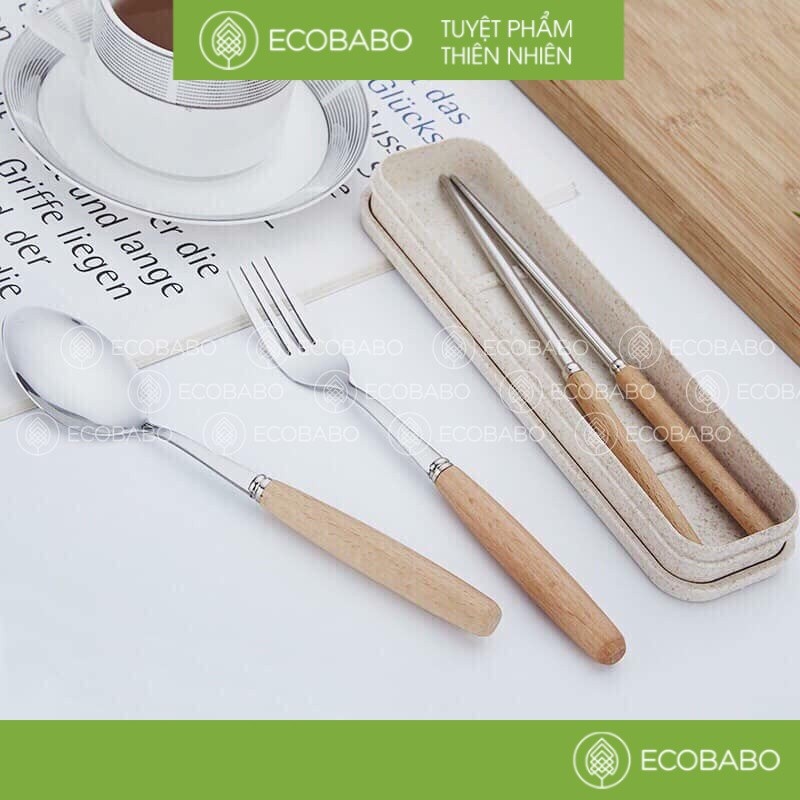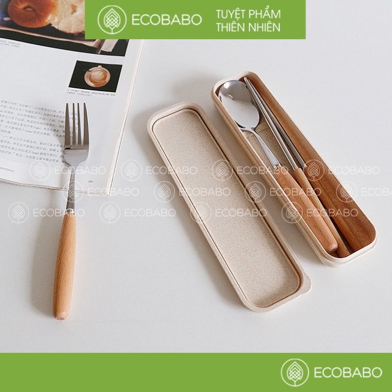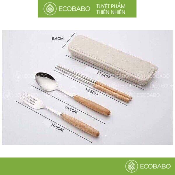 Set 3 gồm đũa – thìa – dĩa được làm từ gỗ sồi kết hợp với inox chống rỉ và được gói gọn trong 1 cái hộp lúa mạch xinh xinh.