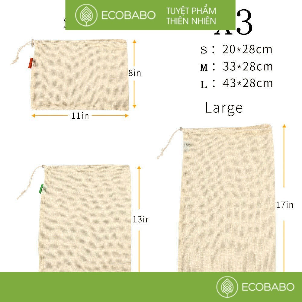 Bạn có thể nói lời tạm biệt túi nilon và túi siêu thị nhựa plastic không thân thiện môi trường. Túi đựng đồ, túi lưới cotton mới của chúng tôi được làm bằng sợi lưới cotton hữu cơ phân hủy sinh học được dùng làm túi đựng đồ khô,túi lưới đựng rau củ quả, túi đựng đồ cá nhân, túi lưới đi chợ đa năng và có nhiều kích cỡ cho bạn lựa chọn.